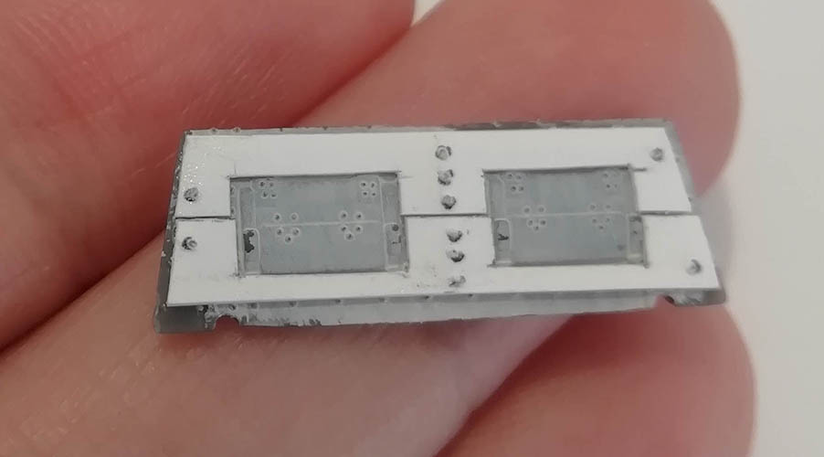 El kit no tiene muchas piezas (lo que no es necesariamente bueno), tiene el conjunto del tren de rodadura y las cadenas en un sola pieza, las planchas del blindaje están realizadas en plástico grueso difícil de cortar en frío, los remaches del techo son algo pequeños y el conjunto de las cinco planchas principales no ajustan bien y dejan algo de holgura.