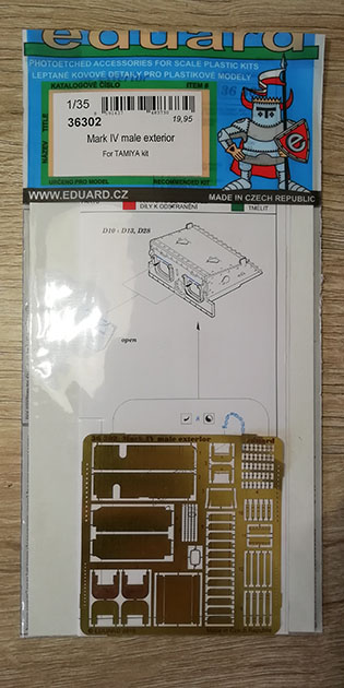 Aunque el kit de Takom es de buena calidad no es perfecto. Los portillos de visión y la caja superior resultan mejorables. Por suerte existe un set en fotograbado de Eduard que nos resulta bastante útil para mejorar nuestra maqueta. No está fabricado para el kit de Takom sino para el de Tamiya, así que le sobra algún milímetro por ciertos sitios, pero se puede adaptar a nuestro kit con un poco de trabajo. Lo peor es el precio: vale tanto como un kit entero; un auténtico disparate, así que entiendo al que decida prescindir de él.